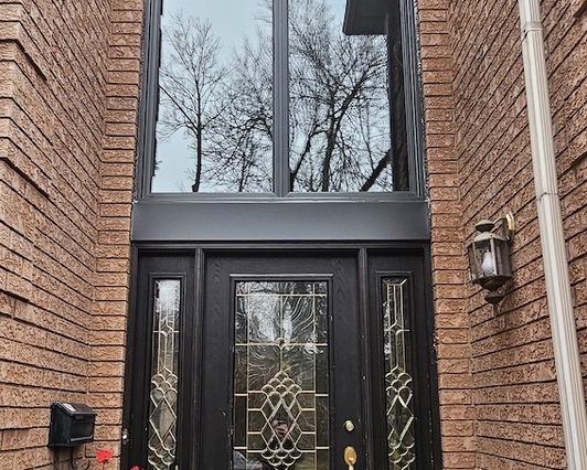 Our team assisted the homeowners throughout the selection process, changing the design for a few windows. For example for their large patio window, we combined the picture style window to 1 casement which allowed to maximize the glass size and expand the beautiful view to the backyard with minimum obstruction. We also helped with choosing the windows' color and proposed the design ideas for the front window above the door, which led to an impressive outcome once we enlarged that window.